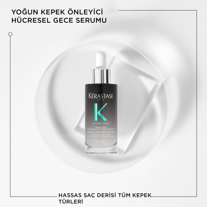 Serum Nuit Anti-Pelliculaire Intensif, hassas saç derisi ve her türlü kepek için Yoğun Kepek Karşıtı Hücresel Gece Serumu’dur. – Hücre yenilenmesini düzenler ve saç derisi florasını dengeler* – Kepeği ve pulları kalıcı bir şekilde ortadan kaldırır ve önler*​- 7 haftaya kadar kepeğe karşı etkili* – Saç derisinin en yenileyici anında gece boyunca 8 saatlik kesintisiz etki * *Serum Anti-Pelliculaire Intensif kullanımından sonra